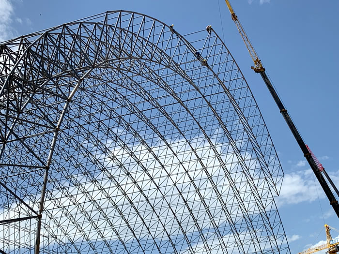 (2)网架加工前应对现场尺寸进行复测,确认无误后方可进行加工、安装;网架制作、运输、安装应遵守《空间网格结构技术规程》JGJ7-2010、《钢网架宁德螺栓球节点》JG/T 10-2009、《钢网架宁德螺栓球节点用高强度螺栓》 GB/T 16939-2016、《宁德钢结构宁德工程宁德施工规范》 GB50755-2012、《宁德钢结构宁德工程宁德施工质量验收标准》 GB50205-2020。